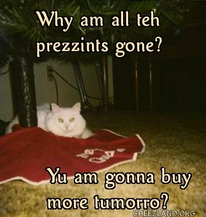 Hmmm, gotta check in wiv bithdai fairy. An ohai annipuss an puddy_tat two.